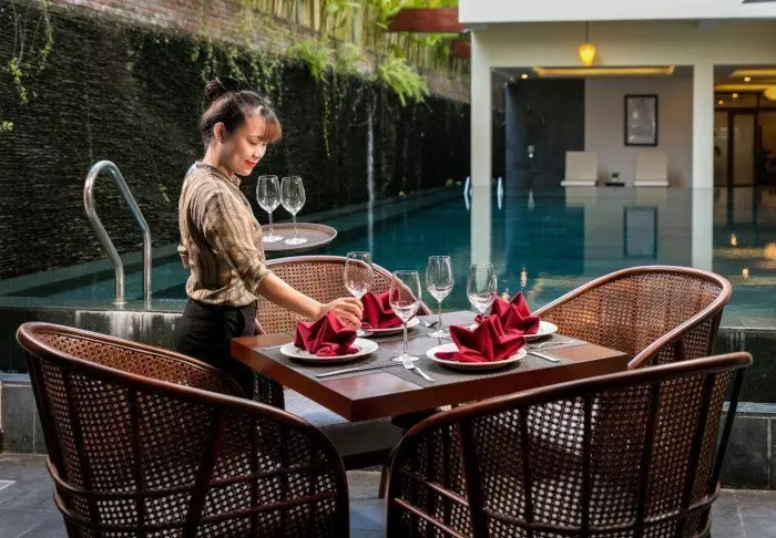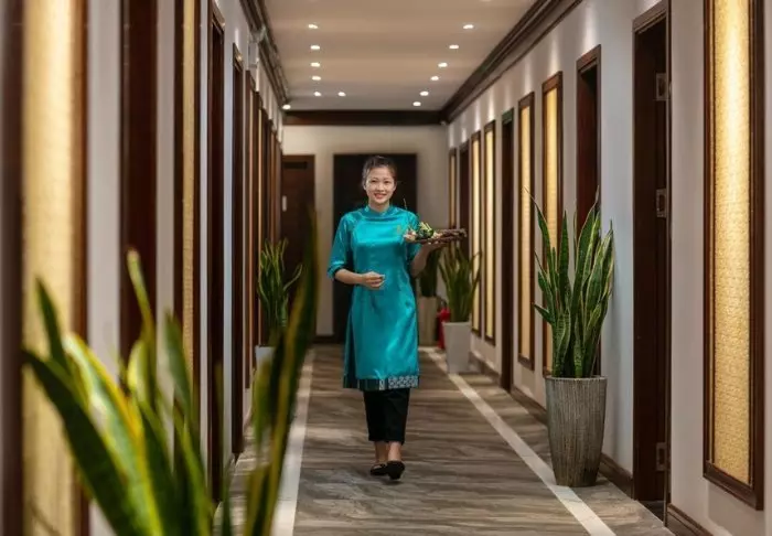 Das Hotel verbindet modernes Design mit vietnamesischen Elementen und schafft so ein einladendes Ambiente für alle, die hohe Qualität schätzen, ohne direkt im Herzen der Stadt zu wohnen.