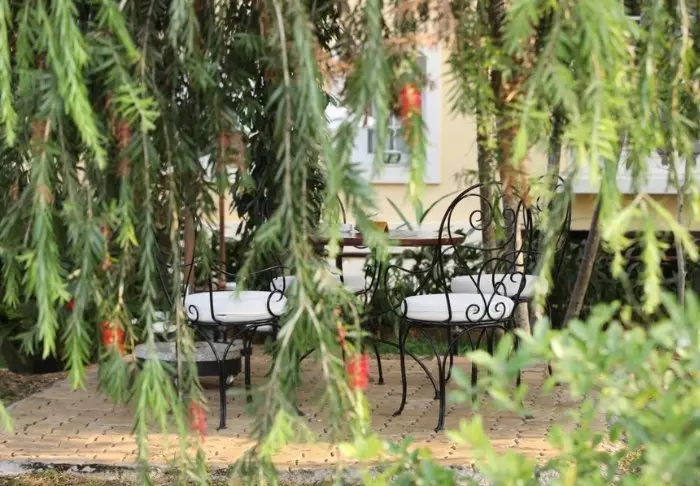Die 30 Zimmer des Resorts sind im blühenden Garten auf Bungalows aufgeteilt. Das Wasser plätschert, und es gibt bunte Blumen und schattige Plätzchen zum Dösen.