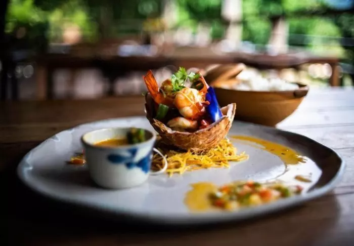 Im Restaurant Citronella warten morgens, mittags und abends kulinarische Erlebnisse auf Sie. Der Koch vollbringt mit frischer Minze, Koriander, Ingwer, Kardamom, Kurkuma, Sternanis und vielen weiteren exotischen Gewürzen aus dem eigenen Kräutergarten des Hotels wahre Wunder. Er versteht sich wirklich darauf, regionale und westliche Küche in perfekter Harmonie zu kombinieren. Darauf können Sie sich freuen!