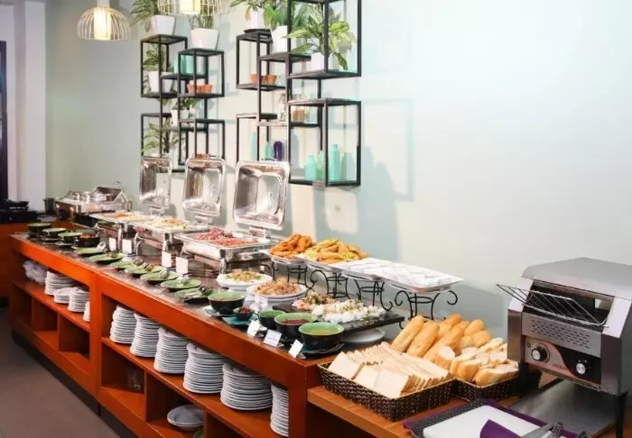Das Frühstück wird im Restaurant des Hotels in entspannter Atmosphäre serviert und umfasst sowohl kontinentale als auch asiatische Gerichte, darunter frisches Obst, Gebäck, Pfannkuchen und Saft.