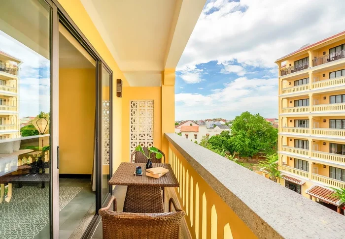 Ihre Standardunterkunft befindet sich in einem der ca. 40 m² großen Deluxe-Zimmer des Hotels, die wahlweise mit einem Kingsize-Bett oder zwei Einzelbetten ausgestattet sind. Die Einrichtung ist hell und freundlich gestaltet, mit warmen Farben, dunklen Holzmöbeln und dekorativen Laternen, die eine lokale Note verleihen. Jedes Zimmer verfügt über Klimaanlage, WLAN, Minibar, Tee- und Kaffeezubereitungsmöglichkeiten, Fernseher, Schreibtisch und einen privaten Balkon. Das Badezimmer ist mit einem Haartrockner und kostenlosen Pflegeprodukten ausgestattet.