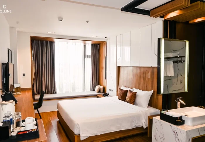 Wenn sich der Hunger meldet, erwartet Sie im Hotel eine verlockende Auswahl. Das Restaurant serviert sowohl vietnamesische Spezialitäten als auch internationale Klassiker, während die hoteleigene Bäckerei frisch gebackenes Brot, Kuchen oder eine gute Tasse Kaffee anbietet. Später am Tag können Sie sich in der Lobbybar bei einem Getränk entspannen, bevor Sie sich wieder auf den Weg machen, um die Stadt zu erkunden – wo noch viele weitere kulinarische Genüsse nur einen Steinwurf entfernt auf Sie warten.