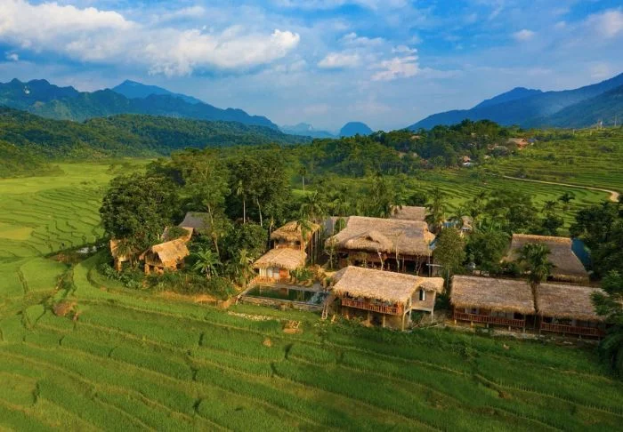 PuLuong Natura liegt im Herzen der friedlichen Region Pu Luong, wo sich Reisterrassen sanft bis zu den sattgrünen Bergen erstrecken. Vom Hotel aus führen schmale Pfade durch die umliegende Landschaft, und in fußläufiger Entfernung finden Sie gemütliche Cafés und Einblicke in das alltägliche Dorfleben.