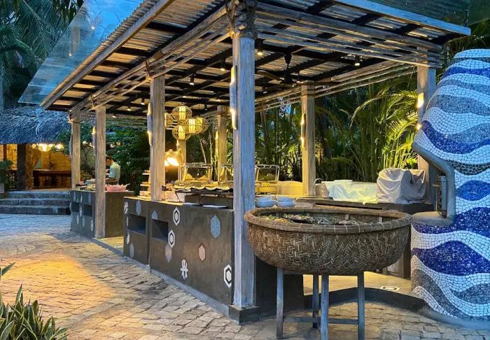 Vom Restaurants und der Bar aus sehen Sie auf den Pool und den Strand. Im Restaurant werden vietnamesische und westliche Gerichte aus regionalen und nachhaltigen Zutaten geboten. Für jeden Geschmack gibt es etwas – auch für Vegetarier und Veganer.