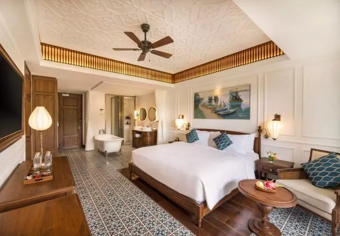 Das einzigartige Hotel wurde im ästhetisch inspirierten Kolonialstil errichtet. Sobald Sie die Lobby betreten, haben Sie das Gefühl, ins alte Indochina zu reisen. Der Stil ist romantisch und charmant, mit einem modernen Touch. Einheimische Künstler haben 250 einzigartige Ölgemälde angefertigt, welche die hellen Wände überall im Hotel zieren.